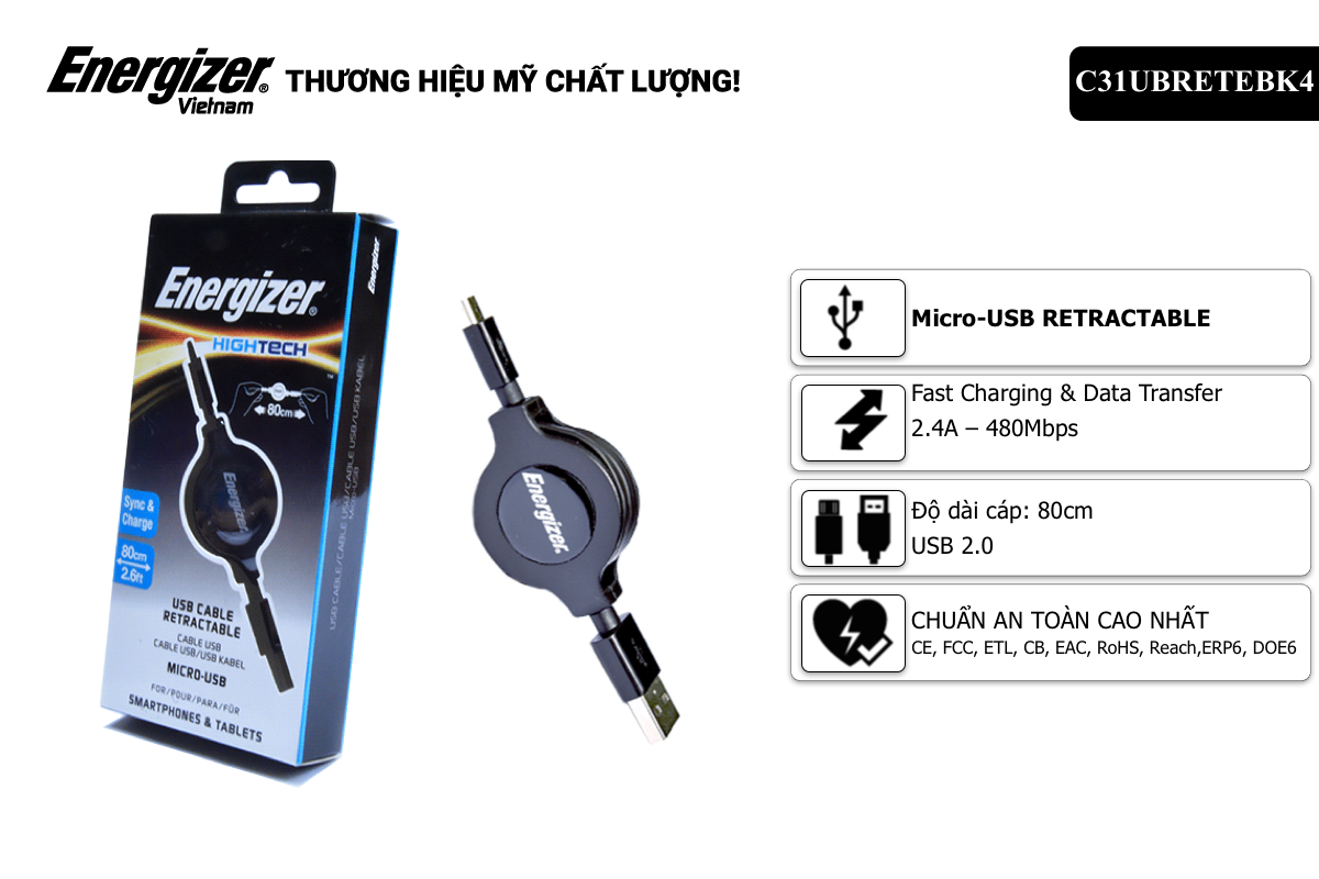 Cáp rút Micro-USB 80cm màu đen - C31UBRETEBK4
